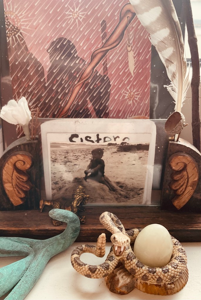 Vandaag is de Dr. ziek, dus ik ben een dagje vrij. Lekker gewandeld over het mistige strand. Zonnetje , geen wind. Lekker frisse lucht… heerlijk ❣️Moet ik vaker doen ! Maar wel met betere wandelschoenen en niet van die schuiflaarzen; ik heb me de bloedblaren gelopen voor de massa! Ik verdien even rust. Dus ik heb vandaag een mooie foto gemaakt van mijn altaar. Comments graag onder dit bericht op mijn Facebook pagina, Sasja Kool of Maan.