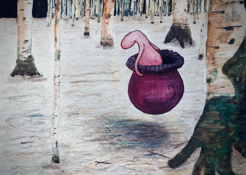 Tijdens het tekenproces van vandaag bekroop mij de behoefte om Clitootjes Ketel ook een persoonlijke naam te geven. Ik ken eigenlijk maar twee namen voor de baarmoeder: Baarmoeder en Womb. Womb is een mooie naam, maar een beetje te algemeen dus toen dacht ik persoonlijk aan Bamo. Wompje zou ook kunnen maar ik wil haar niet kleineren en het komt ook te dicht bij Wormpje, dus Bamo it shall be (¡) YES