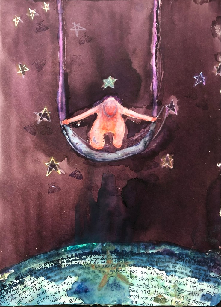 En elke dag en elke nacht liet ze ook alles wat het einde van hets bestaansvorm bereikt had, weer terugkeren in haar warme, zachte en vloeibare buik. En ze droomde, eindeloos dansend met de sterren en planeten, de maan en de zon.
