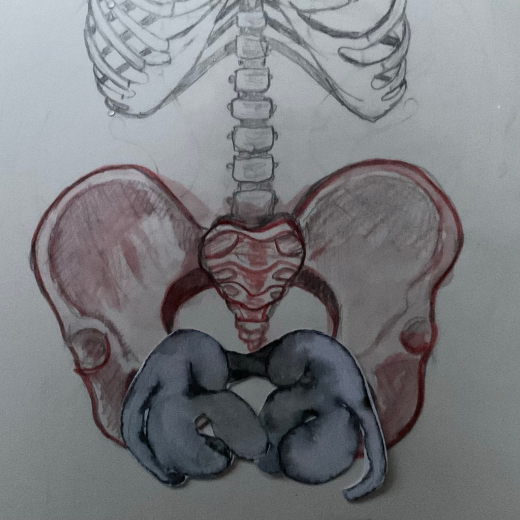 naar dat mijn oog tijdens het hippyshaken viel op een oud cisters tekeningetje waarop twee Clitootjes elkaar omarmen en ik ineens de overeenkomst in vorm zag tussen de twee Cisters en het Bekken (met een beetje fantasie dan hè) plus het heerlijke gevoel dat ik de hele tijd vol trots en dankbaarheid ben over het feit dat ik nu mijn eigen Clitootjes Topfan Club bij elkaar heb getekend en geschreven 🫶🏻 (die nu al bestaat uit 16 vrouwen, die ik ook allemaal in het ECHT ken en LIEFHEB (¡) WAT EEN RIJKDOM, ZOVEEL LIEVE ECHTE SISTERS, LEVE JULLIE !!!,