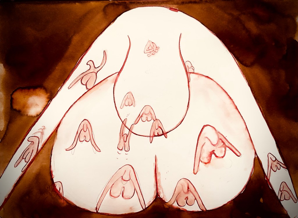 Als vormgever aan innerlijke groeiprocessen vertaal ik dat naar de LIJN. Ik hou ervan om te spelen met lijnen, die ook weer kunnen verdwijnen. Hun vormende karakter verliezen. Door te gummen of door de inkt met water op te lossen. Op de grens is het spannend (¡)