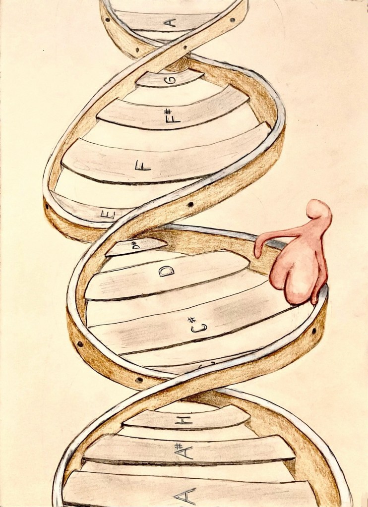[…] ze vraagt je om je bij je doel te houden, je pad en je passie. Ze vraagt je om steeds opnieuw op te staan, te doen wat je kunt, je bent uniek en hebt schoonheid. Met haar zoetspelende fluit, die diep in je hart speelt, zal ze je steeds lokken […].