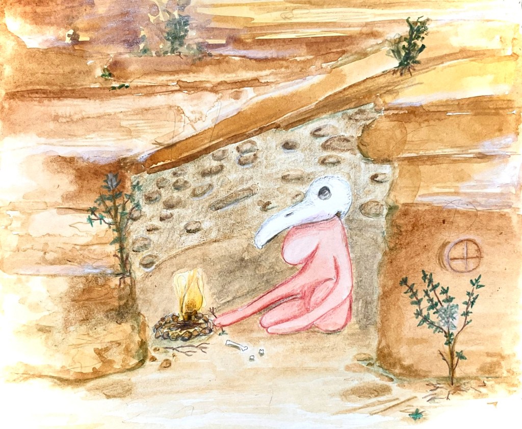 De vloer van de grot was koel, droog en zanderig. Tussen het zand lag een groot aantal hele kleine, holle botjes en werveltjes. En een enkel schedeltje. Dit was de plek waar vogeltjes na hun laatste vlucht waren neergestreken. Hun levende familieleden kon ze, zittend in het Oor buiten horen zingen.