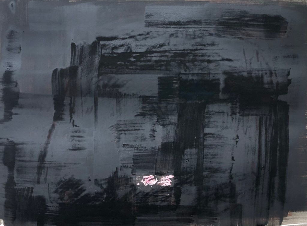 Deze foto vind ik best mooi, maar de tekening kon niet zo blijven, want Clitootje was er nog niet. Het licht reflecteert ook mooi op de nog natte delen zwarte afdekverf.