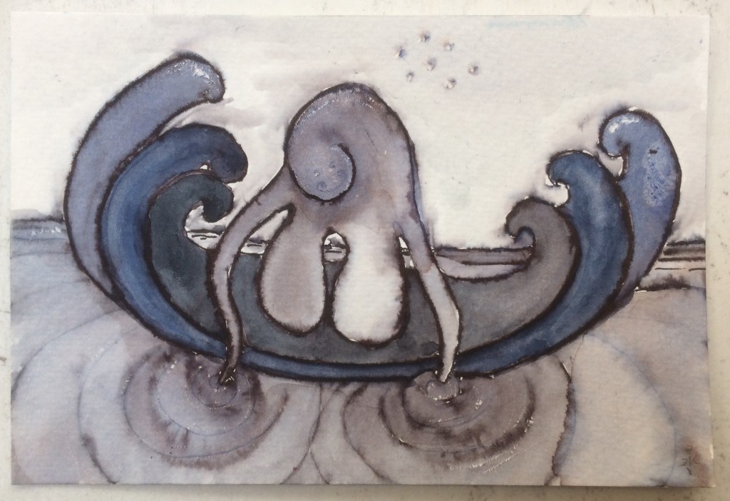 Deze was voor iemand die ik heb leren kennen op de rouwvrouwen-opleiding bij Linda Wormhoudt (R.I.P.). Ik heb dus alleen deze foto nog. Het motief van boot, golven, spiralen en water keert regelmatig terug in m’n werk.