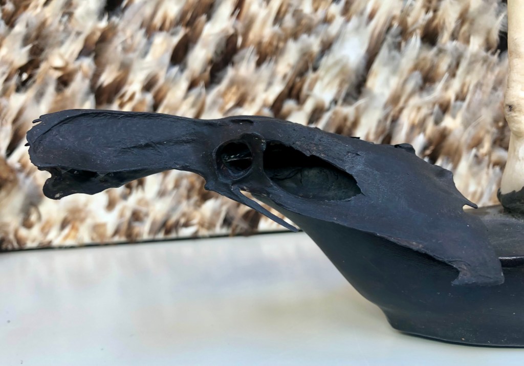 Het boegbeeld is een zwart geschilderd bekken-bot van Gans. Het lijkt net op een Drakenkop :