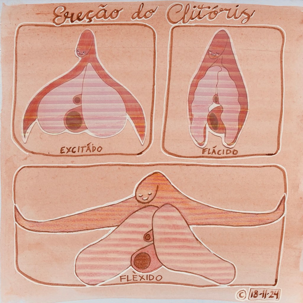 Afgelopen weekend was ik eindelijk m’n oude dokterskoffer aan het uitmesten en kwam ik de oude educatieve ‘Ereção do Clitóris’-print weer tegen. Ereção betekent erectie in het Portugees (Brazilië). De printer was kennelijk een beetje leeg geweest vandaar het streepjes-effect.