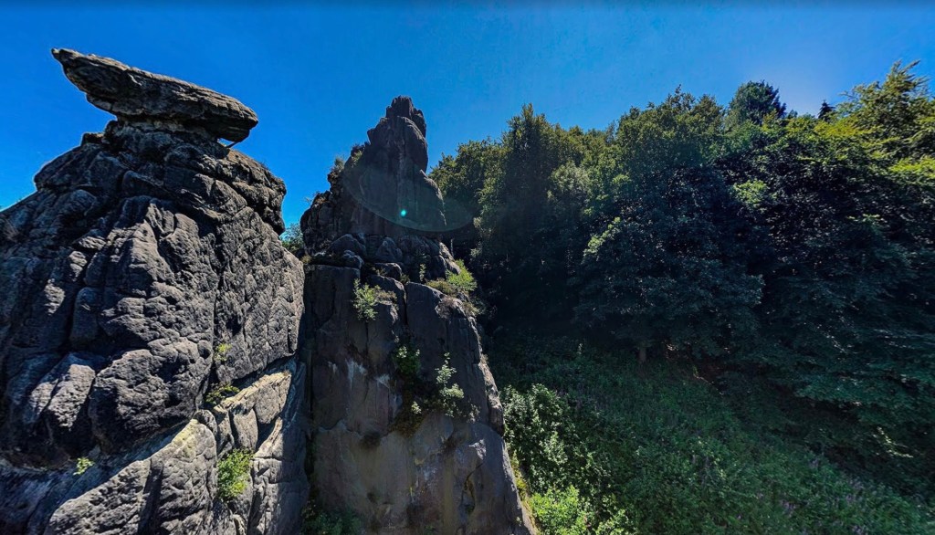 Ik las nog wat verder over mijn geliefde vrouw Holle (die ik me nog goed herinnerde uit de Rouwvrouwen-lessen en die toen ook al veel indruk op me had gemaakt) en sloeg ook nog wat bladzijden terug en las op blz 258 e.v. hoe Linda Wormhoudt op veld-onderzoek was voor ‘Haar Boek’ in Duitsland, ‘vlak bij de Externsteine; een rotsformatie, een krachtige en machtige plek.’