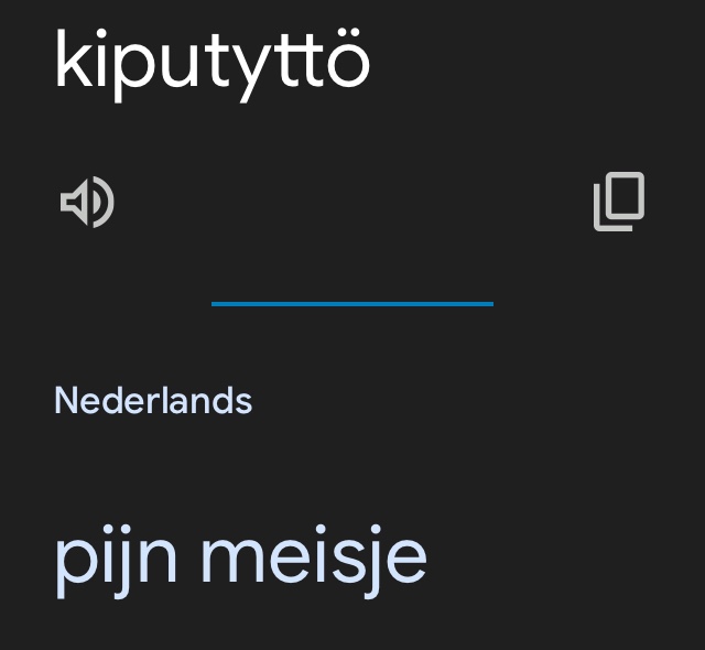 Het pijnmeisje is de naam van een Godin. Een Finse. Ze heet eigenlijk Kiputyttö. Dat klinkt ongeveer als Kiépohtuhtte. De letterlijke vertaling ervan is pijnmeisje.