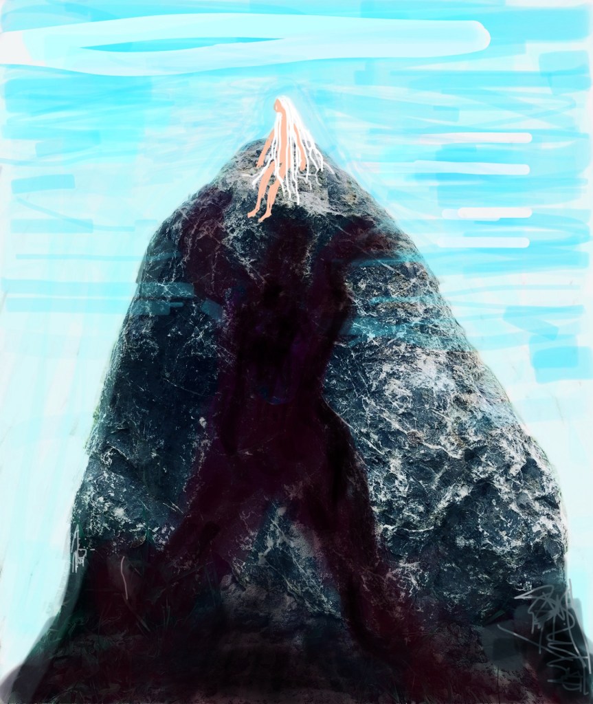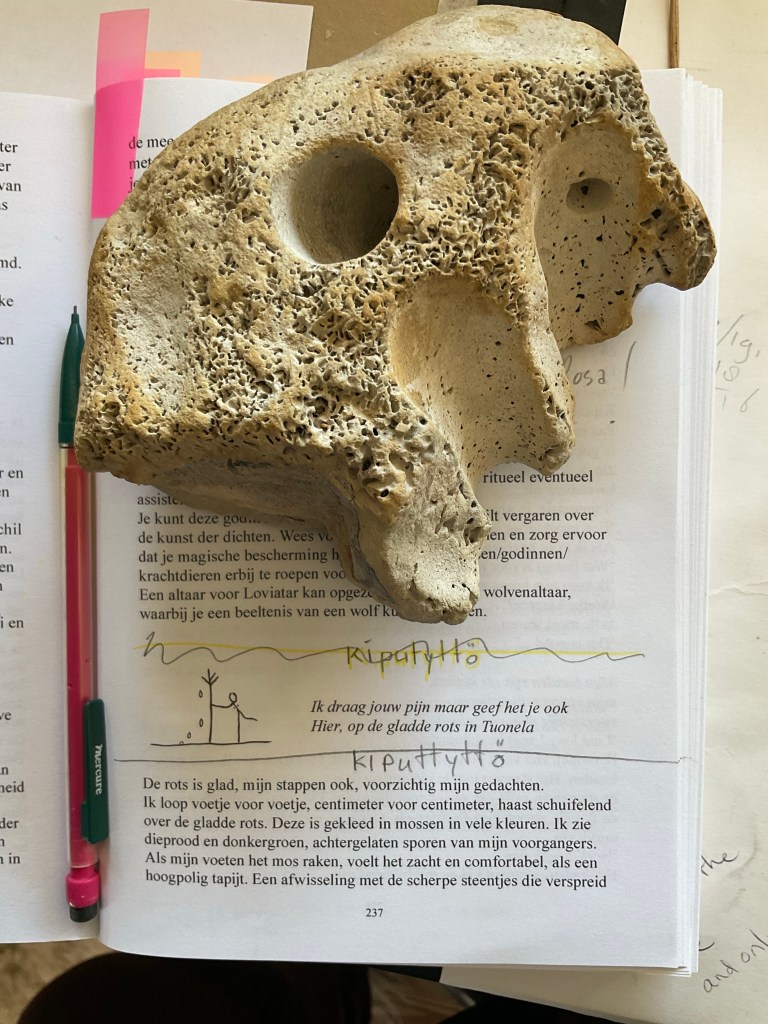 De rots is oneindig groot. Ze ligt niet in de middenwereld, waar ik vandaan kom. Deze rots is anderwerelds. Glibberig en glad, verraderlijk: Kipumäki, de pijnrots.