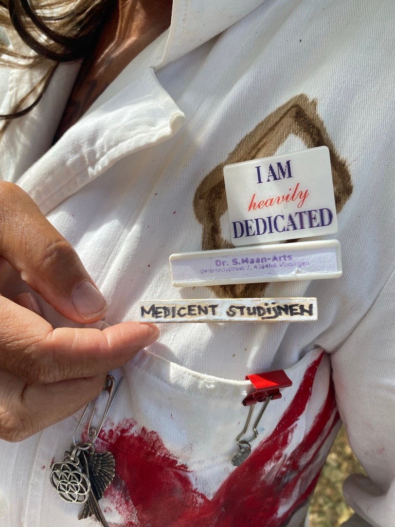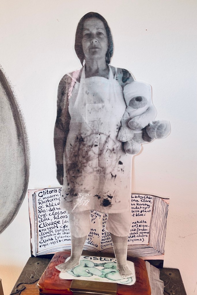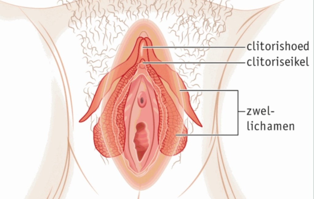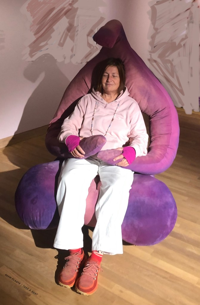 Sasja in de ‘Clit Rocker’ van Melanie Bonajo 2023, Dordrechts Museum Mijn afbeelding bij het bericht ‘laten stromen’ is op deze rauwe foto afbeelding gebaseerd..Deze illustreert mooi hoe de hele clitoris ten opzichte van de schaamlippen, de vaginale opening e.d. gepositioneerd is.Deze kleifiguurtjes laten de verwantschap van de Clitoris met de Penis zien, al is het me niet helemaal duidelijk waar de ballen vd P. gebleven zijn. Maar daar hoeven we het hier verder niet over te hebben.